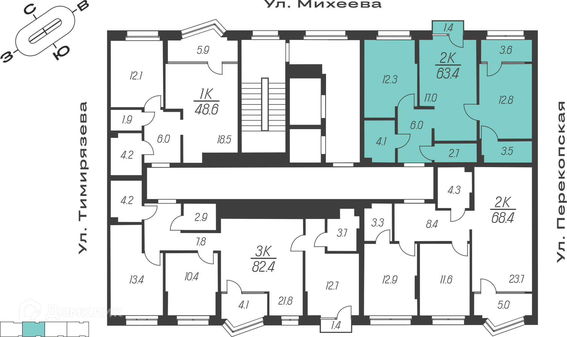 Площади квартир