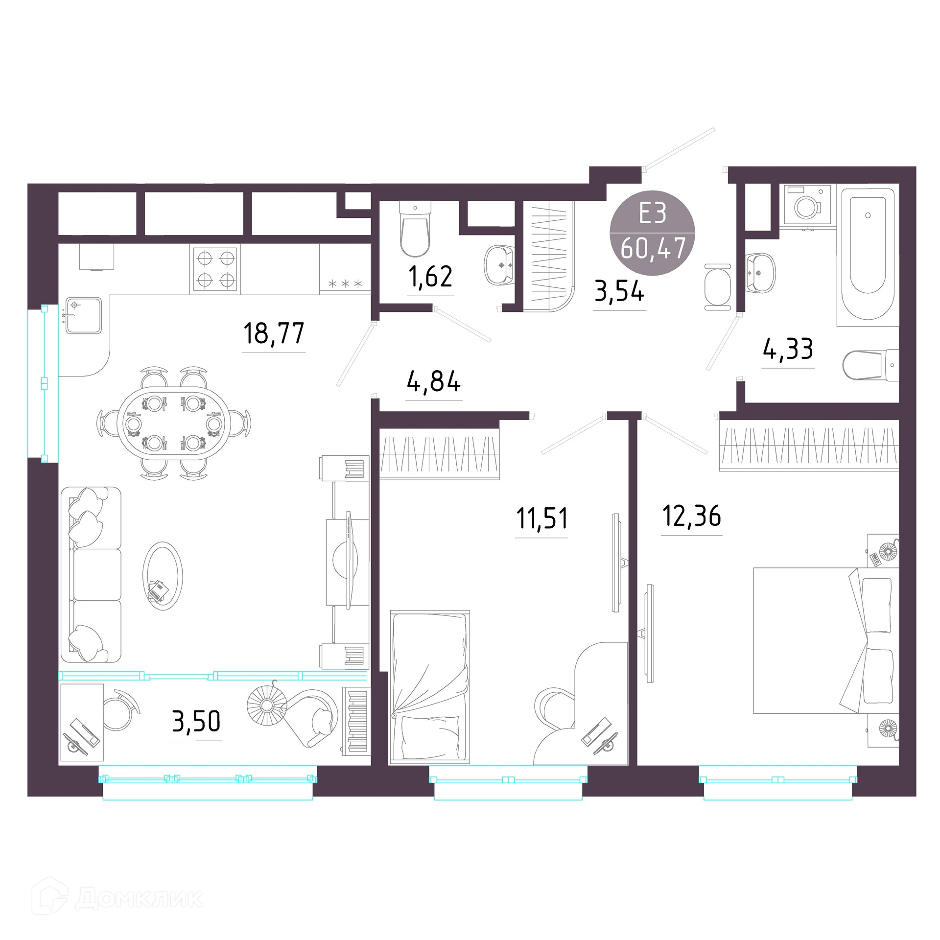 Площади квартир