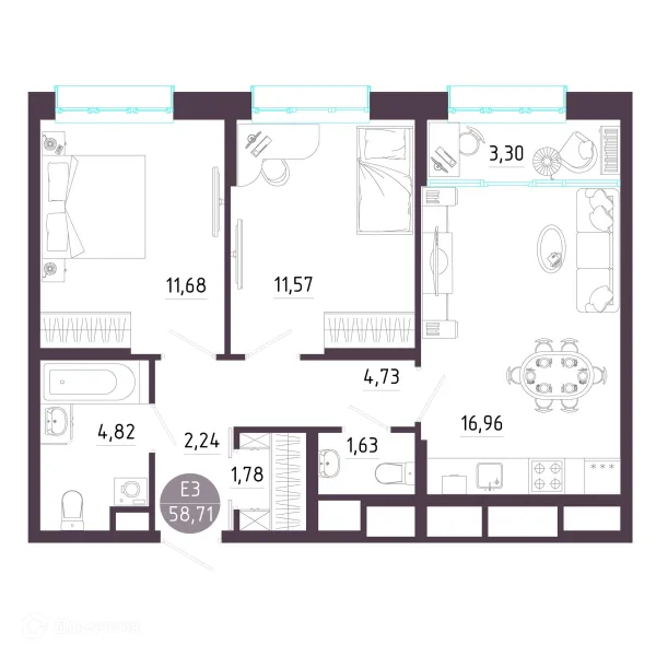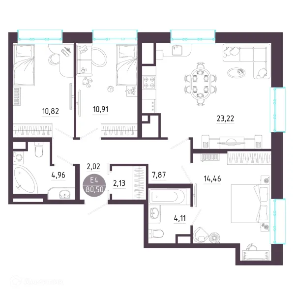3 комн. квартира в Туле в ипотеку от 70 124 руб/месяц