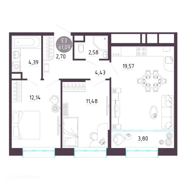 2 комн. квартира в Туле в ипотеку от 51 988 руб/месяц