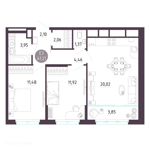 2 комн. квартира в Туле в ипотеку от 52 879 руб/месяц