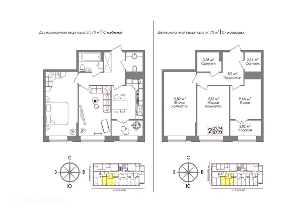 2 комн. квартира в Туле в ипотеку от 51 509 руб/месяц