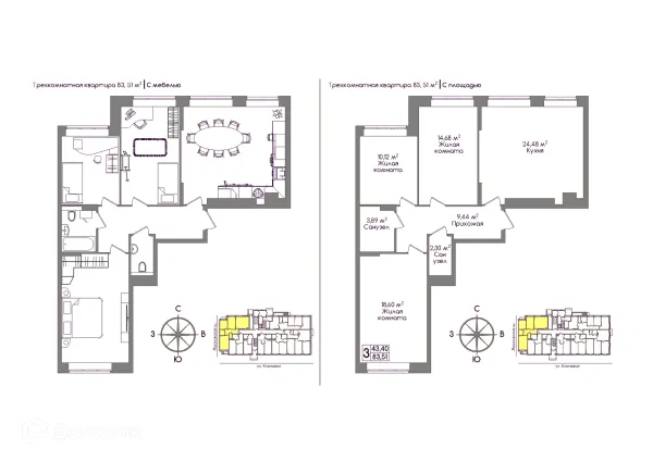 3 комн. квартира в Туле в ипотеку от 67 580 руб/месяц