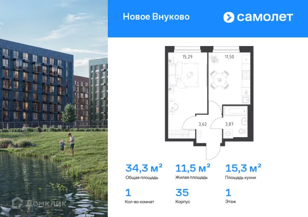 1 комн. квартира в Москве в ипотеку от 53 831 руб/месяц
