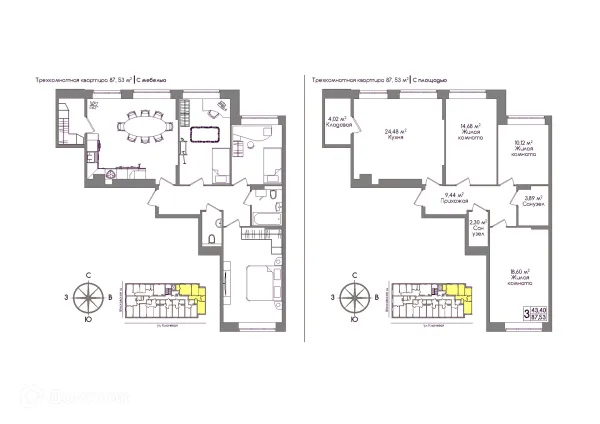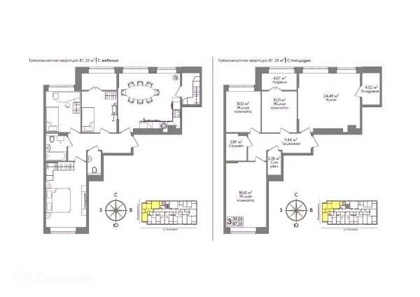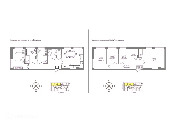 3 комн. квартира в Туле в ипотеку от 63 849 руб/месяц