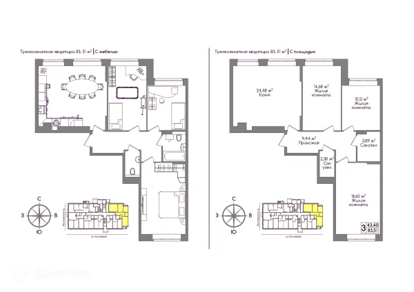 3 комн. квартира в Туле в ипотеку от 62 478 руб/месяц