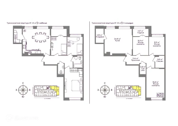 3 комн. квартира в Туле в ипотеку от 67 266 руб/месяц