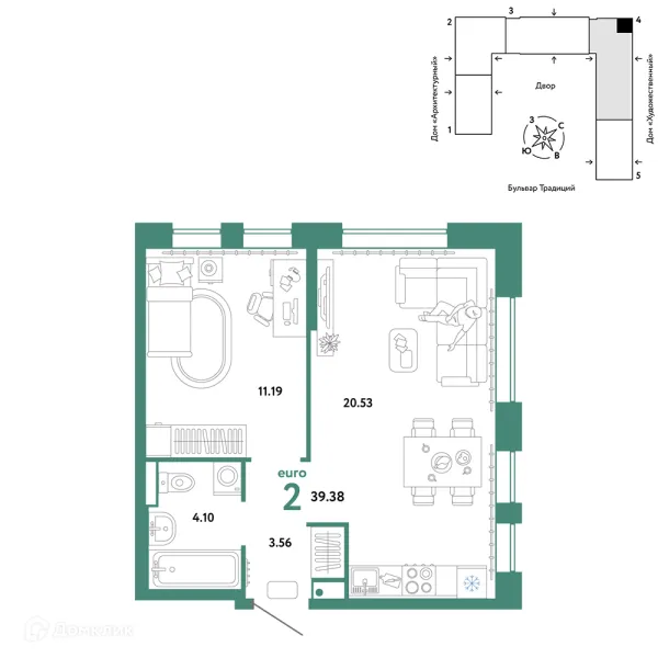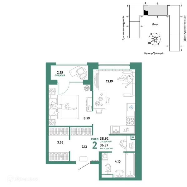 2 комн. квартира в Тюмени в ипотеку от 43 519 руб/месяц
