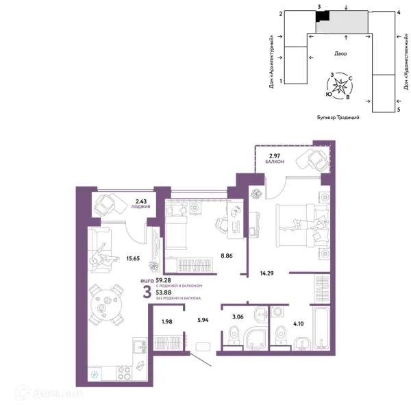 3 комн. квартира в Тюмени в ипотеку от 63 243 руб/месяц