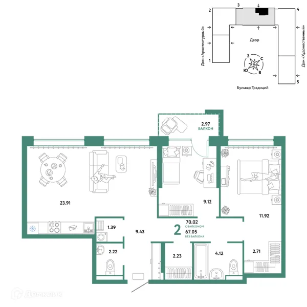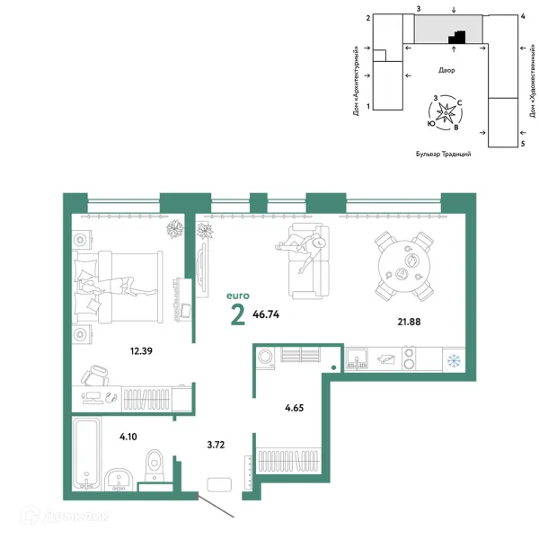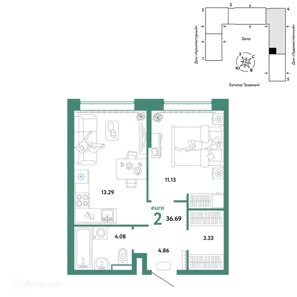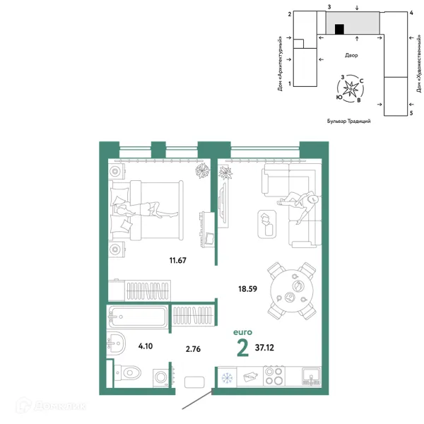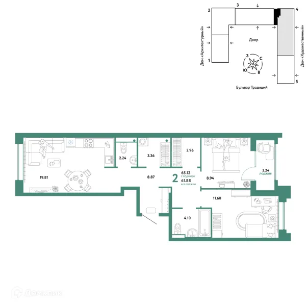 2 комн. квартира в Тюмени в ипотеку от 63 635 руб/месяц