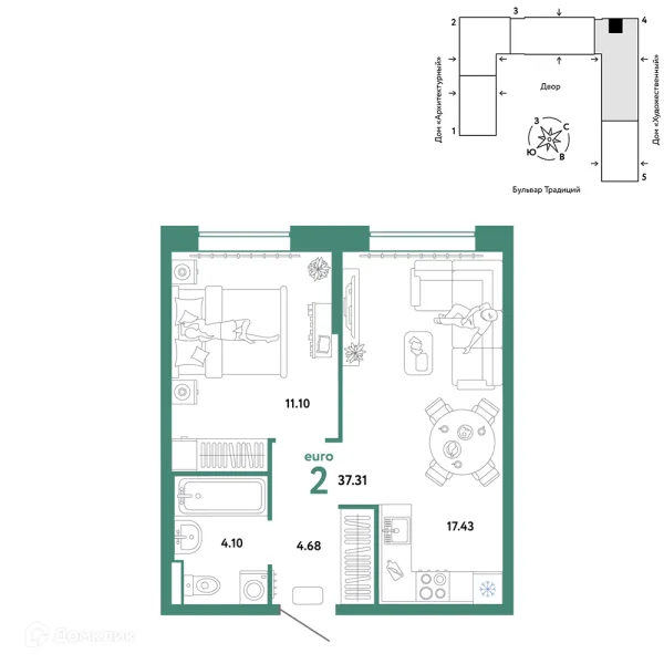 2 комн. квартира в Тюмени в ипотеку от 43 832 руб/месяц