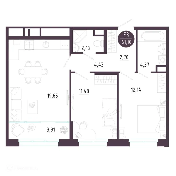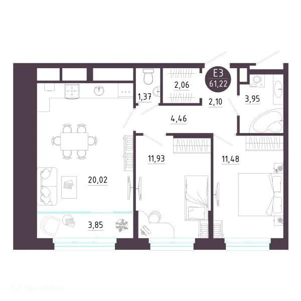 2 комн. квартира в Туле в ипотеку от 55 818 руб/месяц