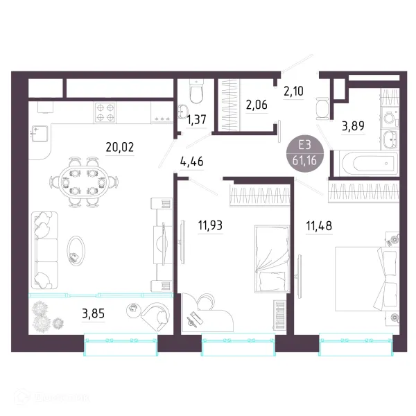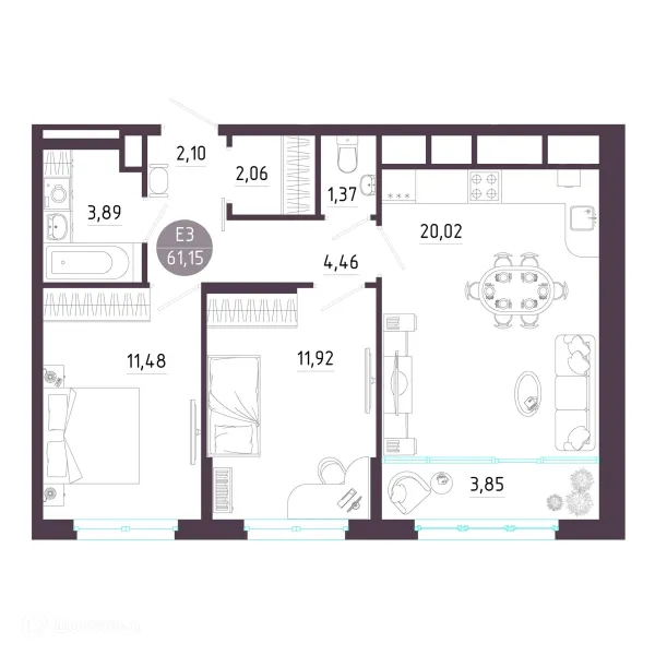 2 комн. квартира в Туле в ипотеку от 52 779 руб/месяц