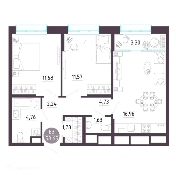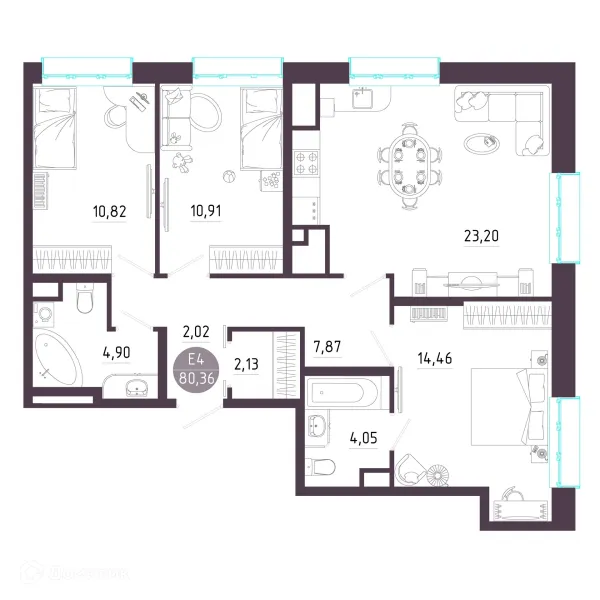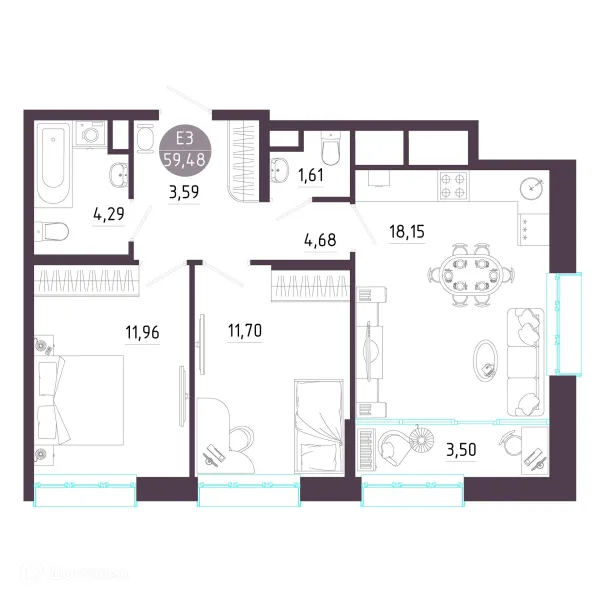3 комн. квартира в Туле в ипотеку от 71 159 руб/месяц