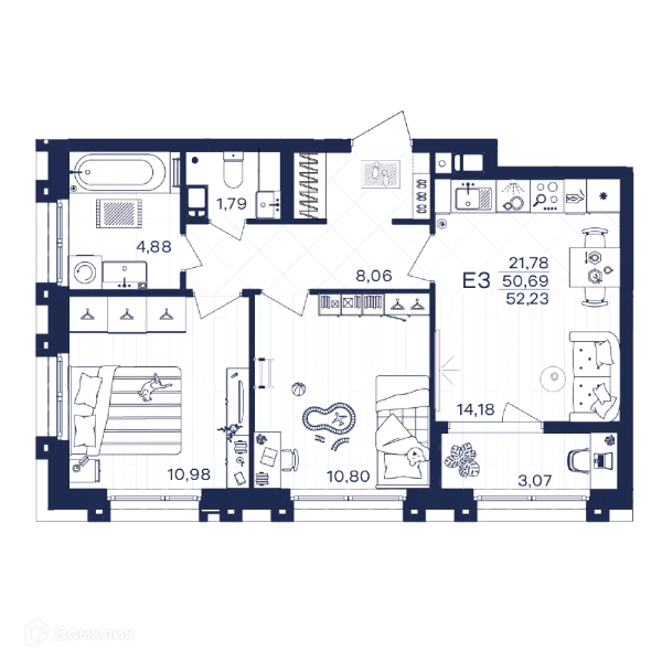 3 комн. квартира в Туле в ипотеку от 91 445 руб/месяц